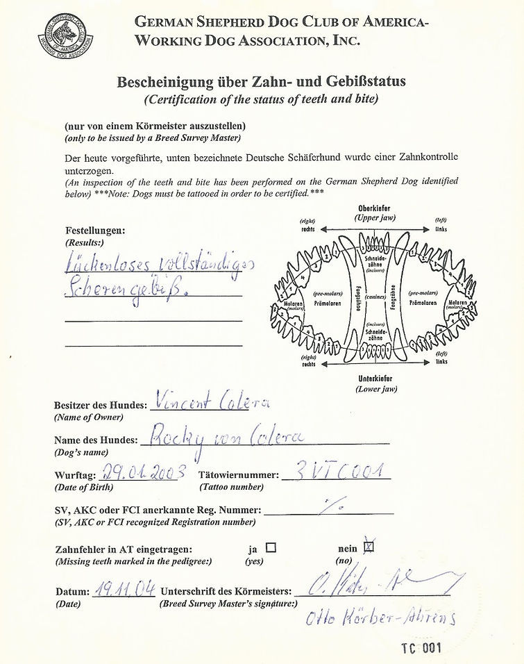 OFA Cretification for Darva (Elka) Vom Tannenhof and Rocky Von Colera